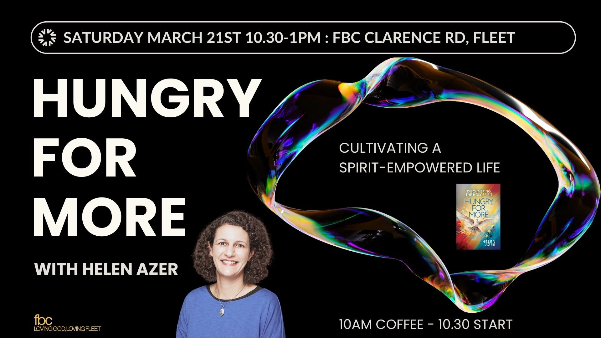 A wonderful opportunity on Saturday March 21st 10-1.30PM with visiting speaker Helen Azer. Come and learn more about cultivating a Spirit-Empowered Life as Helen looks at the person and works of the Holy Spirit. Doors open 10AM for coffee and sessions run 10.30-11.30 and 11.45-1PM. Admission is free.