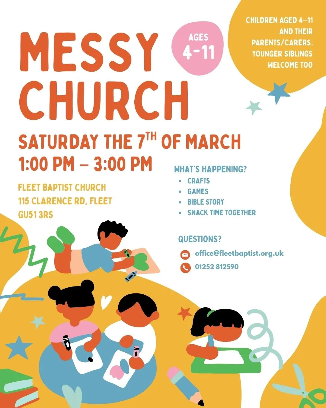 Messy Church returns. Saturday March 7th 1-3pm